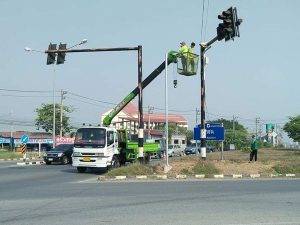 จ้างรถเครนติดกระเช้างานเปลี่ยนซ้อมแซมหลอดไฟสุราษฎร์ธานี